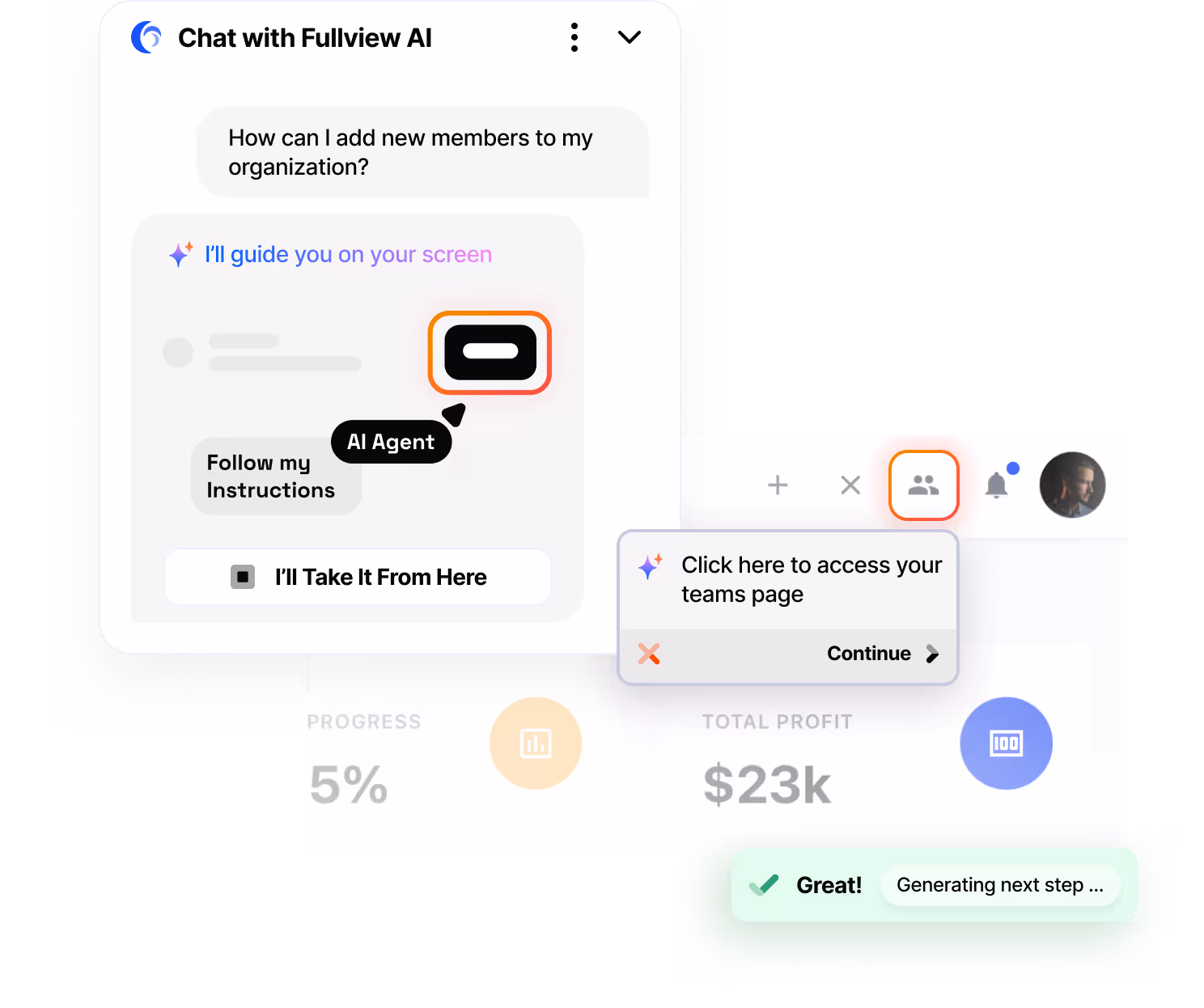 Most AI agents fail since they can only chat with users. Fullview can visually guide your users across your product and show them exactly how to accomplish what they want.