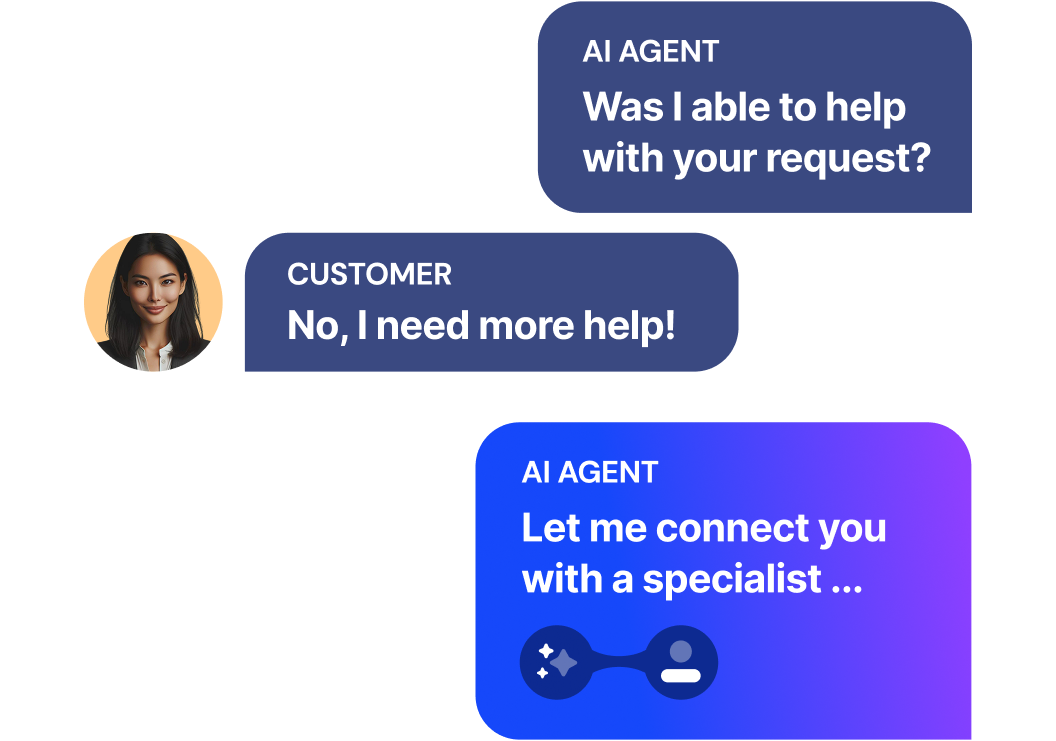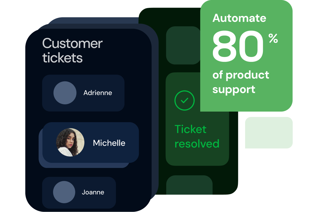 Seamlessly escalate from AI guidance to human guidance. Support agents can review automatic screen recordings of user issues to speed up escalations, and even jump into human-led visual guidance with cobrowsing.