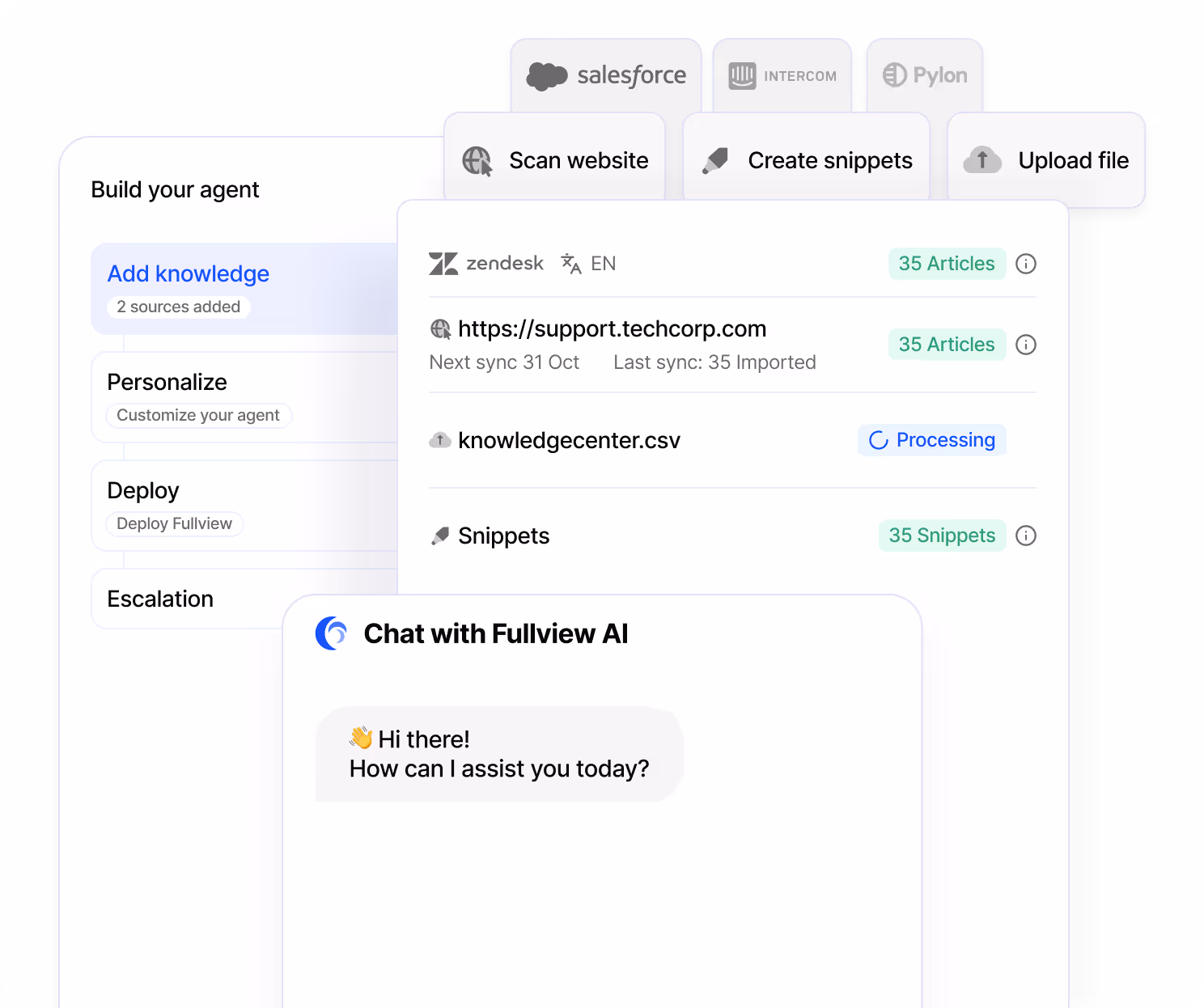 Fullview AI works with most popular helpdesks and chatbots. You don’t have to move your whole workflow, Fullview AI will work smoothly with your existing set up!